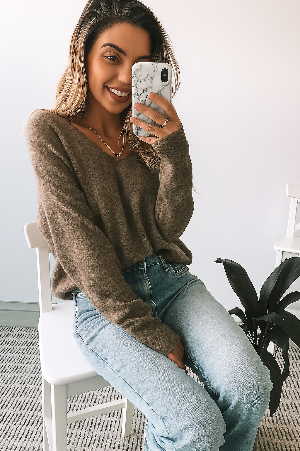 • Key Features: Medium weight minimal-stretch fabric. Unlined (not sheer). Cozy wool-blend. Soft V neckline. Relaxed fit perfect for a growing bump or lounging around. Drop Shoulder style. Relaxed long sleeves.