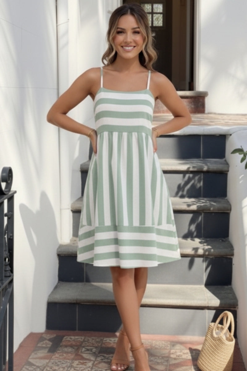 Sylvaine Mini Dress - Green Stripe