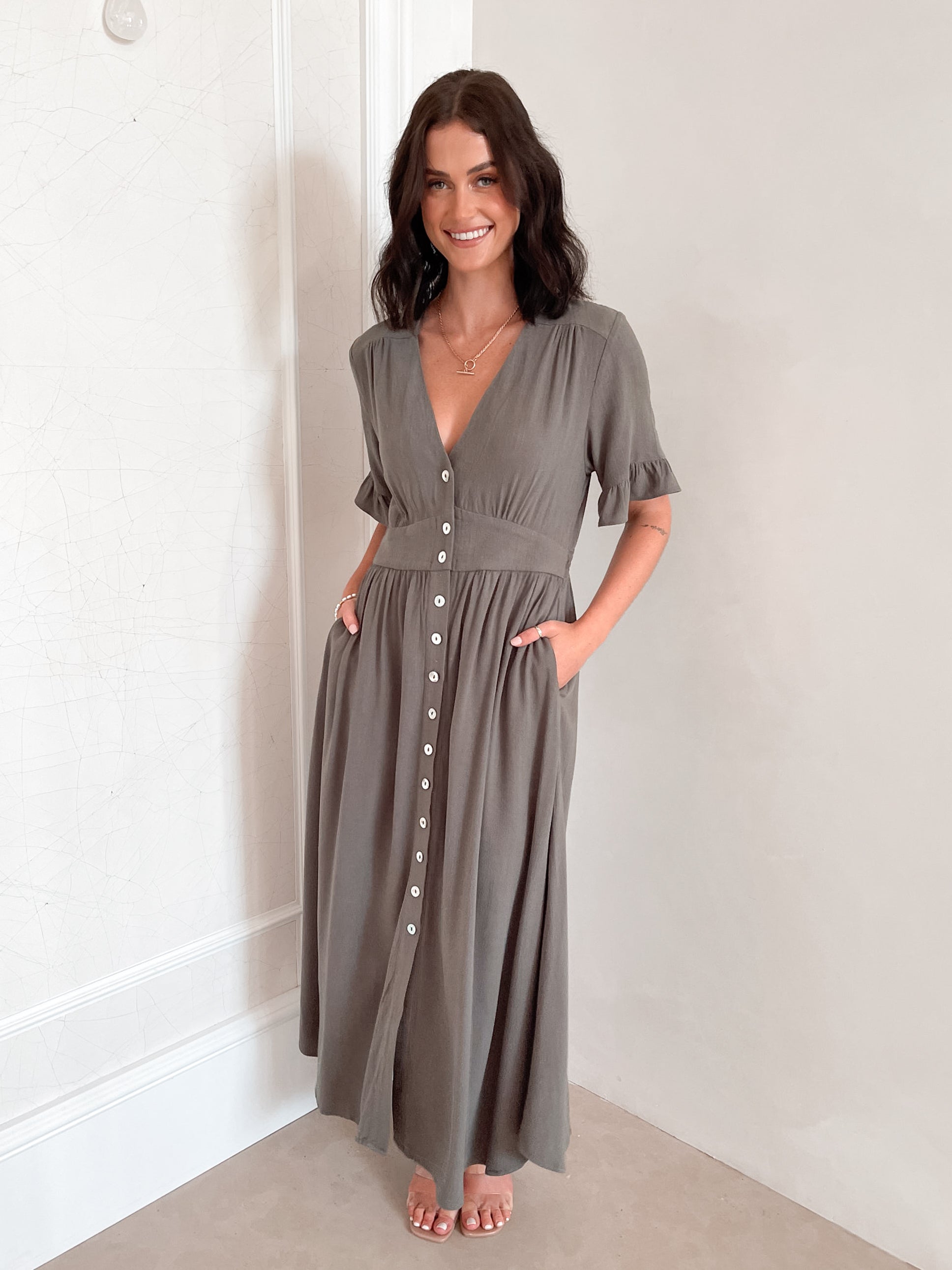 Korbella Dress - Khaki is exclusive to the Esther the Label Collection.