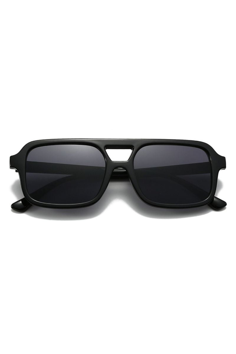 The Siri | Black sunglasses offer a sleek, modern, and versatile look. These stylish shades feature a classic matte black frame in a squared-off aviator style, perfectly complemented by dark grey-tinted lenses. Ideal for adding an effortlessly cool touch to any outfit while providing essential eye protection.