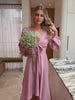 Our best selling Bryleigh Dress is back in a stunning & feminine blush tone. It's a gorgeous medium weight material in a flowing style that suggests elegance and poise. The deep v-neckline with bust ties are a chic feature with long bishop sleeves that float as your arms move. This standout dress is a relaxed fit with a cinched waist to highlight your gorgeous figure in all the best ways.