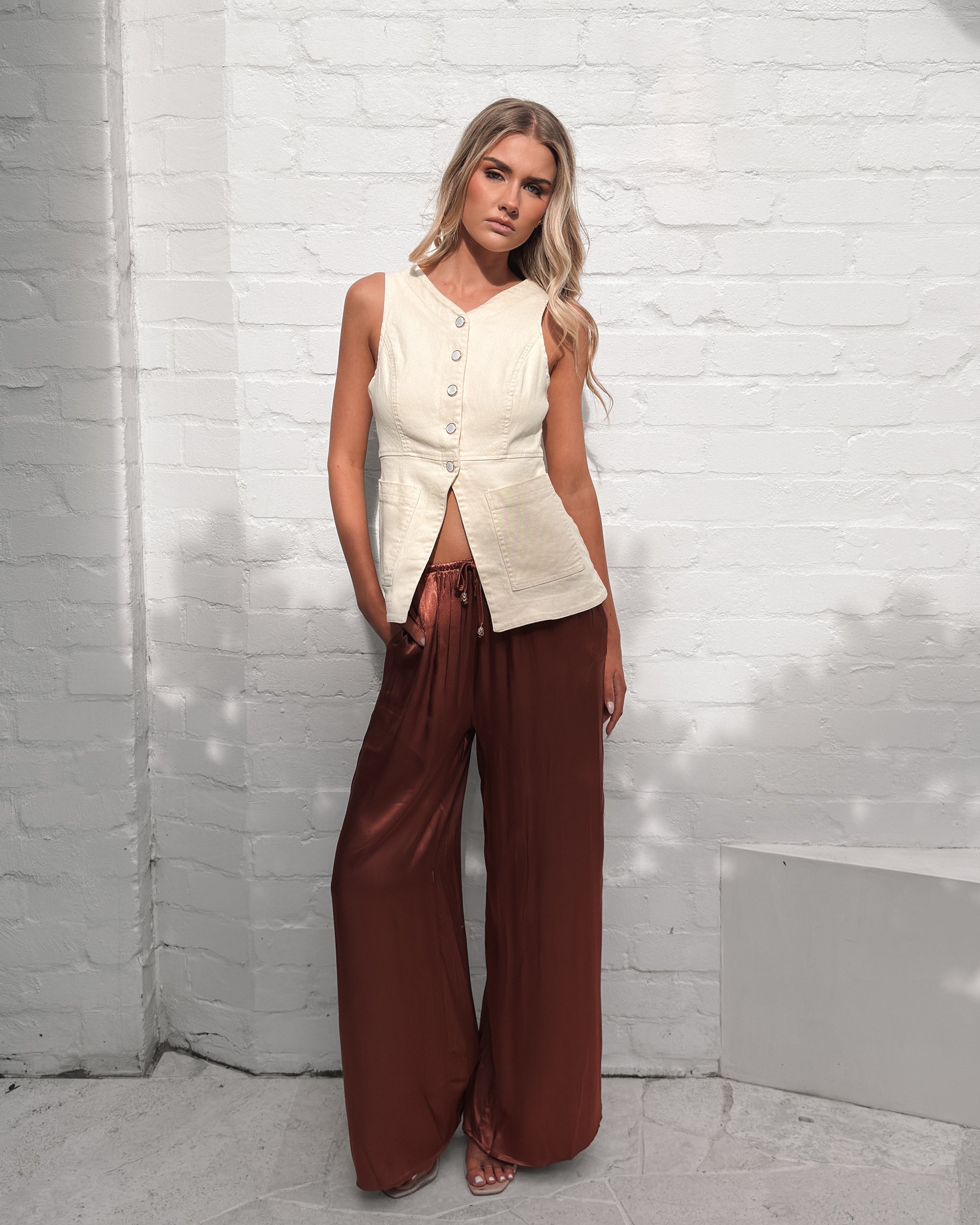 At Esther, we offer a range of gorgeous women’s wide leg pants to pair with your favourite tops and knits. Whether you’re looking for something to wear to your 9-5, to dress up for cocktails with the girls, or for a lazy Sunday afternoon, our range of wide leg pants for women has something just for you!