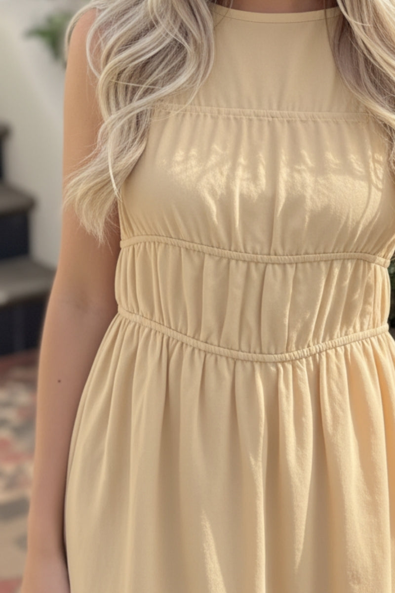 Drench yourself in the warm glow of the Ilyra Mini Dress, a piece designed for the modern woman who loves an easy-to-wear yet utterly chic look. In a beautifully soft beige tone, this dress is the epitome of understated elegance. The flattering sleeveless, mini-length silhouette is perfect for sun-drenched brunch dates, weekend market strolls, or a casual evening out. Style it simply with a gold chain and espadrille sandals, or dress it up with statement jewelry and heels. The Ilyra is the new neutral staple your wardrobe has been waiting for, effortless style, beautifully executed.