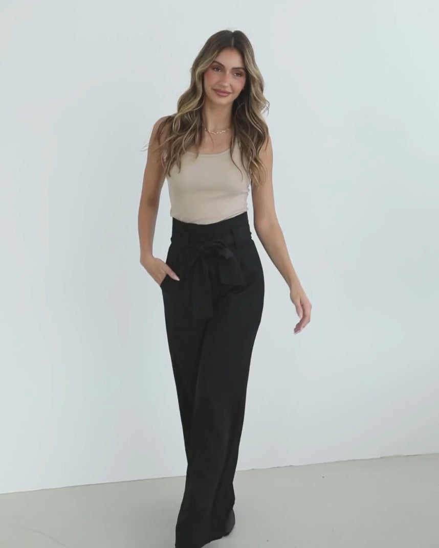 - Key Features: Maxi length. Relaxed fit. Wide leg pant. Paperbag fitted high waist style. Detachable fabric waist belt. Side pockets. Length: approx. 113cm from waist band to hemline.