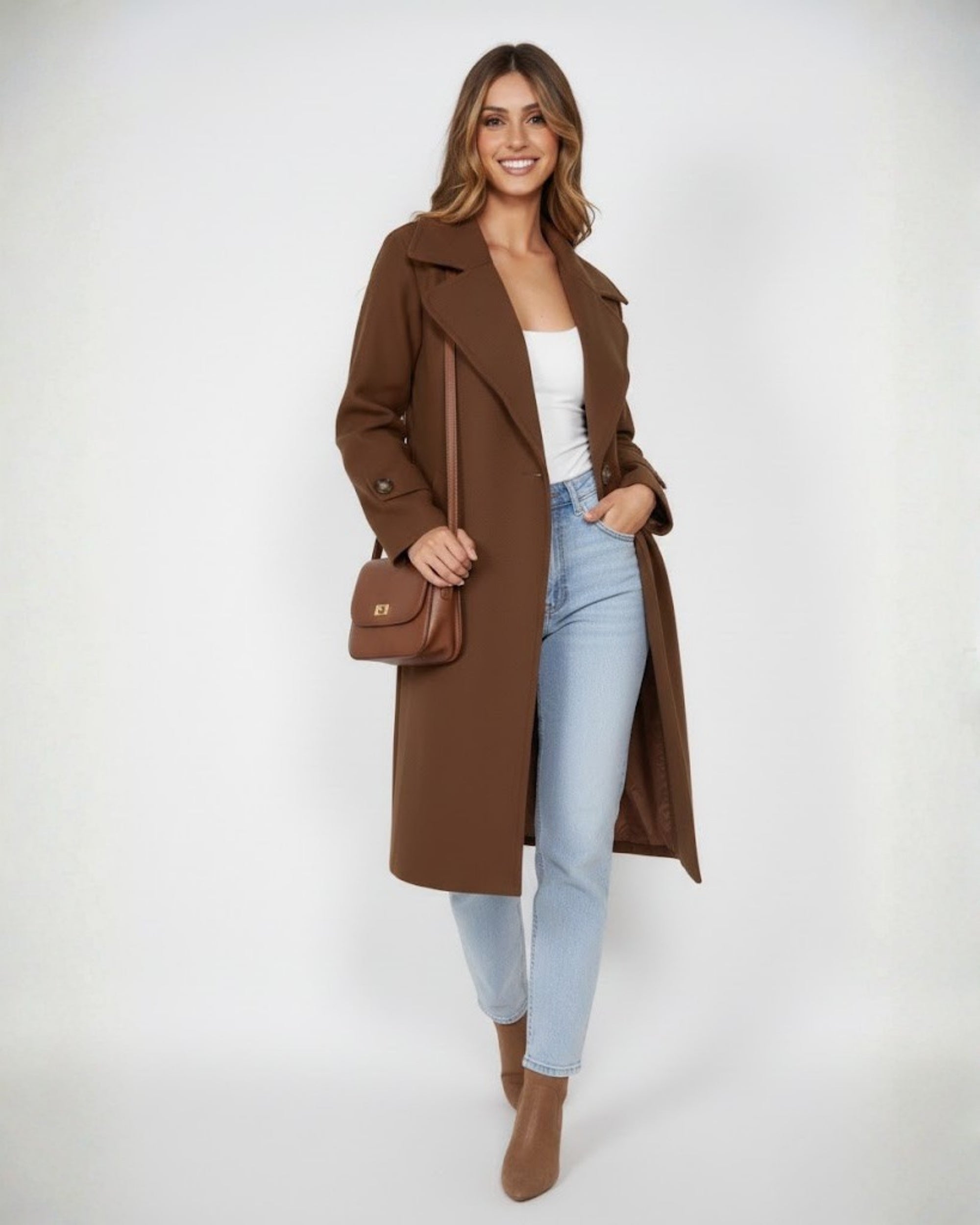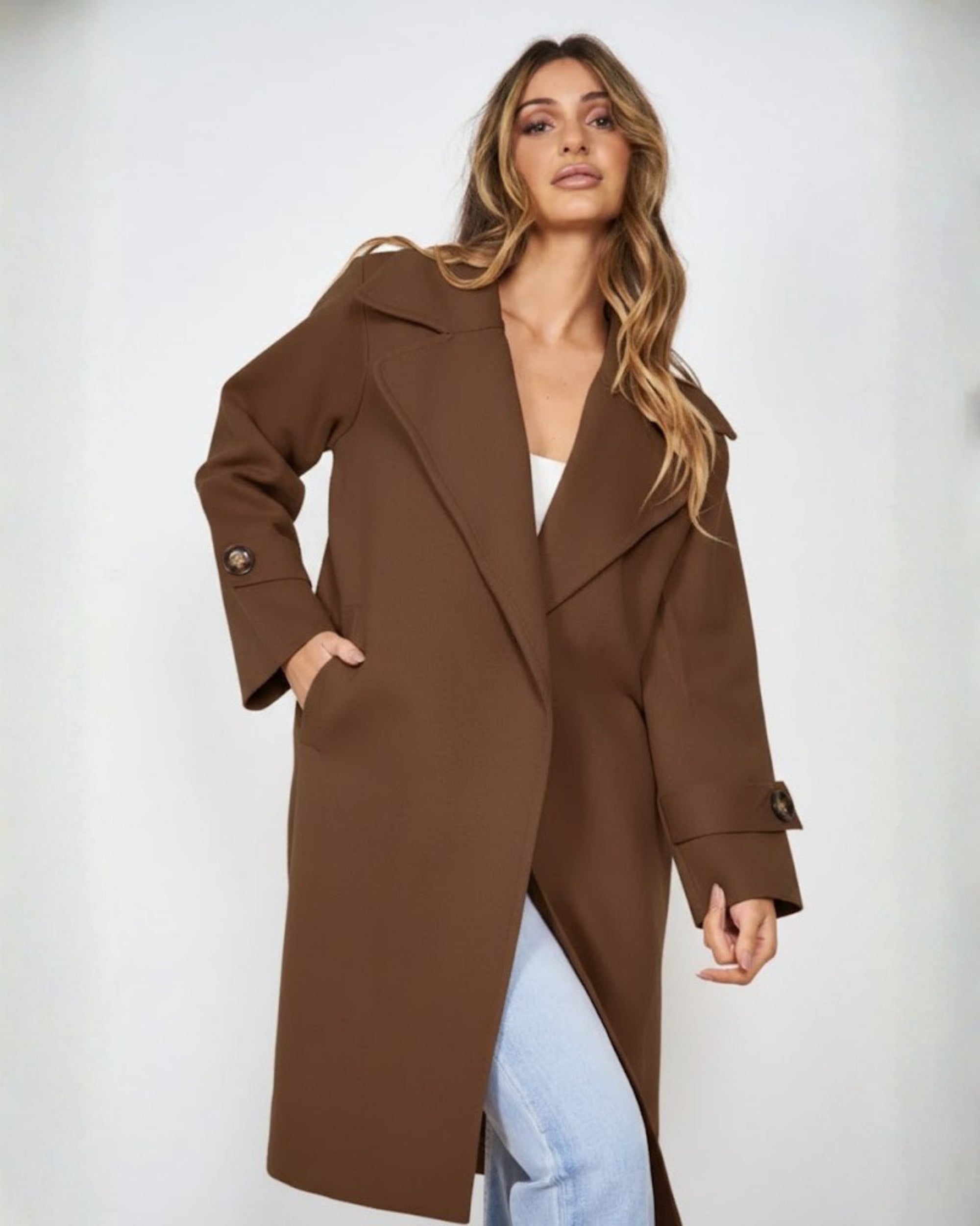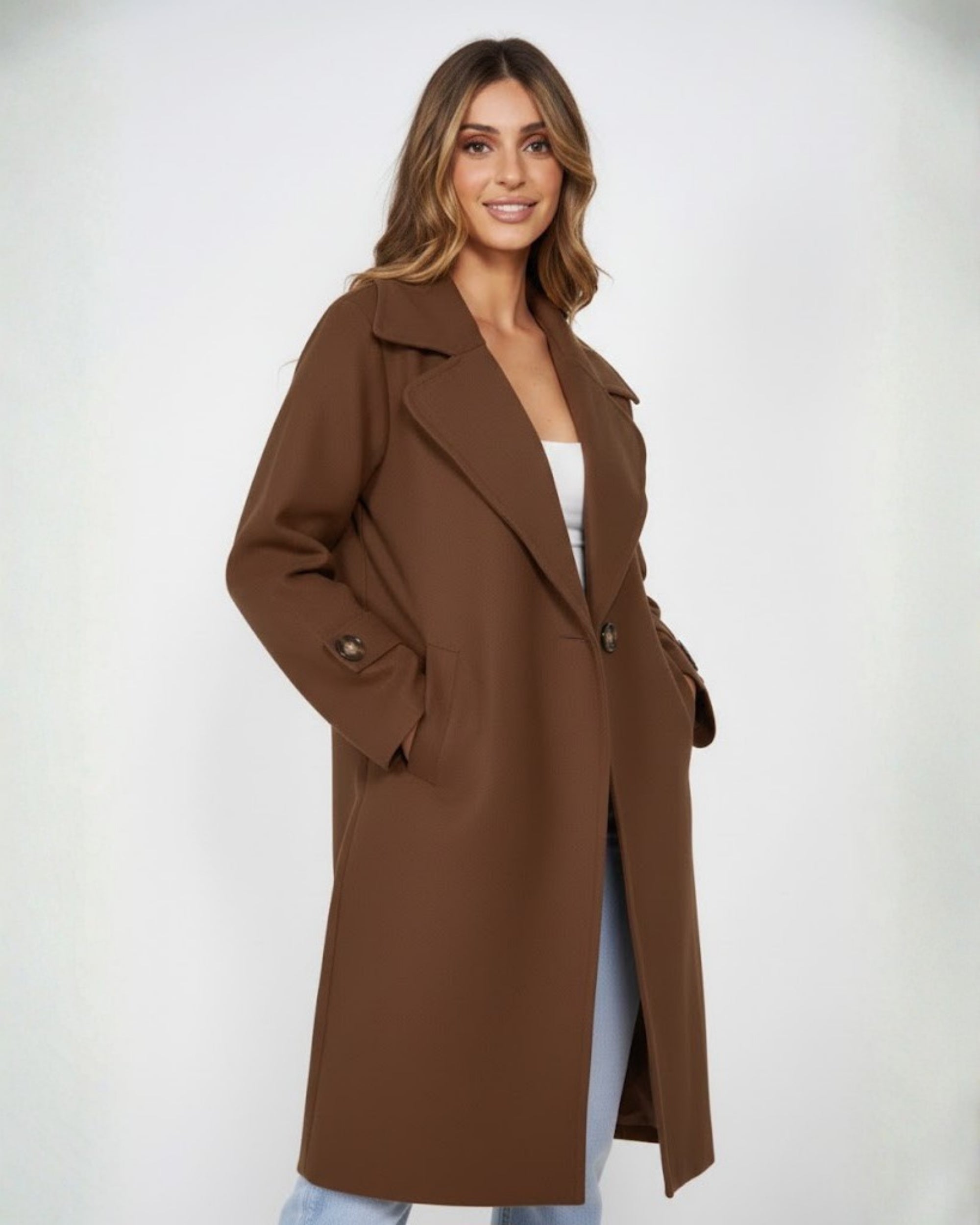 Exude effortless sophistication as the temperature drops with our Fireplace Coat in a rich, velvety Mocha. Designed for the modern woman who refuses to sacrifice style for warmth, this coat is the ultimate investment piece for your winter repertoire.