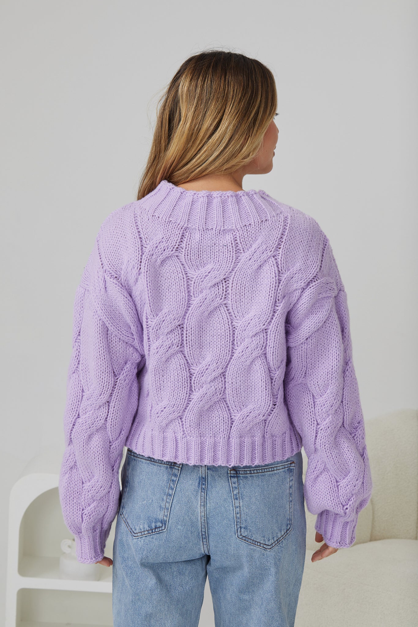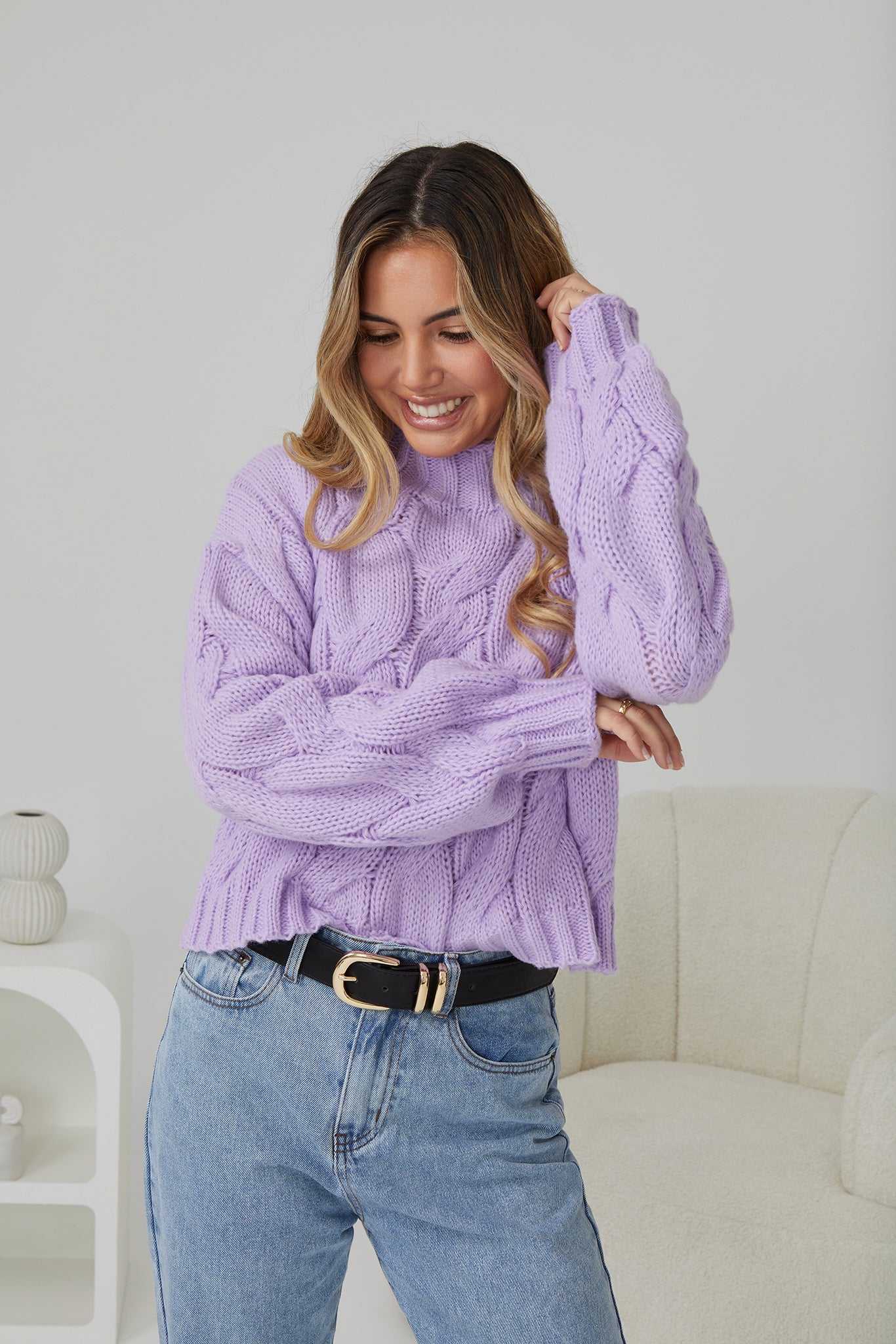 Our Hadi Knit comes in a beautiful lilac colour. Make everyone in awe with this captivating knit that features a high round neckline, long extended sleeves, relaxed fit and textured fabric. Look perfect for your comfy casual look with a pair of straight jeans!