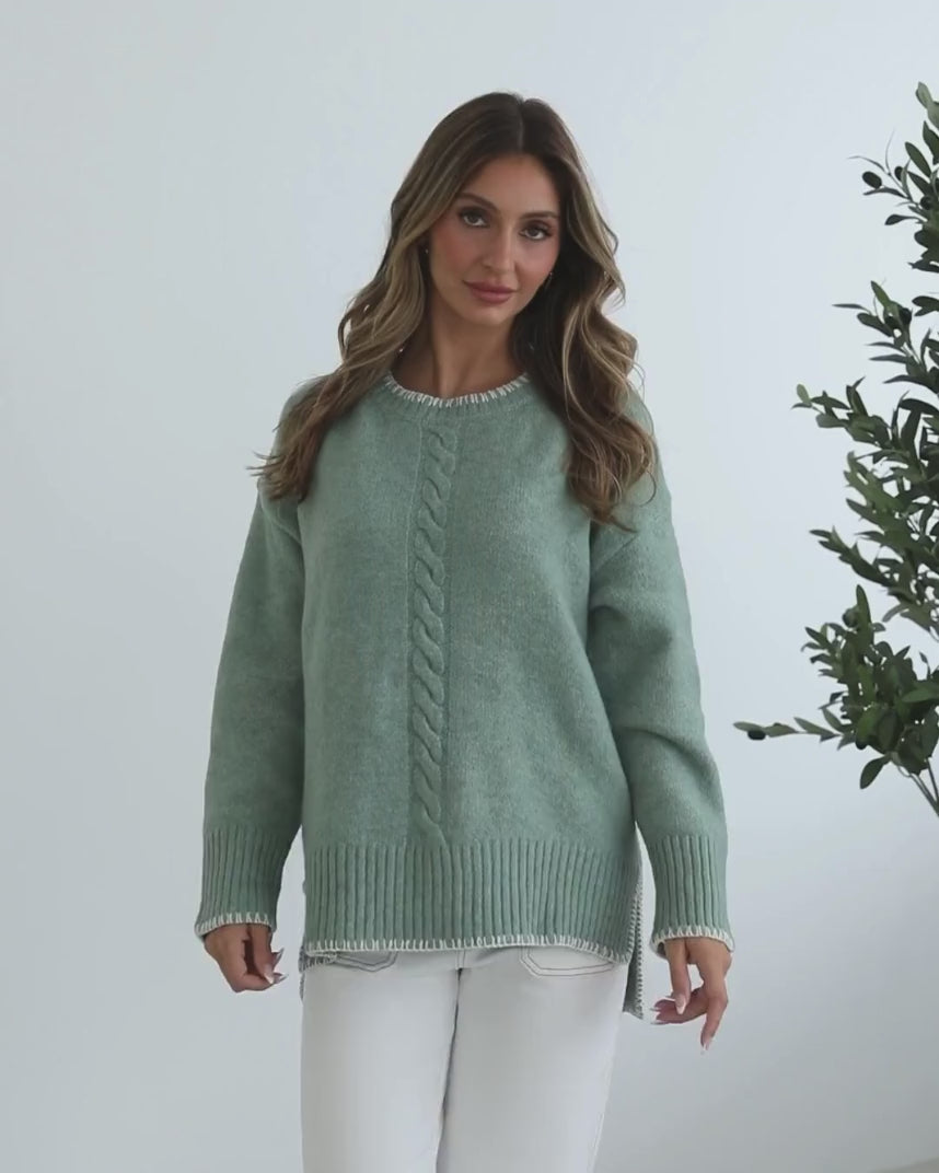 Our Nasheia Knit comes in a sage colour. Layer up for crisp mornings in this jumper that features a round neckline, long sleeves with ribbed cuffs and a comfy fit. Team it with straight-leg jeans, white sneakers, and a wool scarf for a relaxed yet put-together vibe!