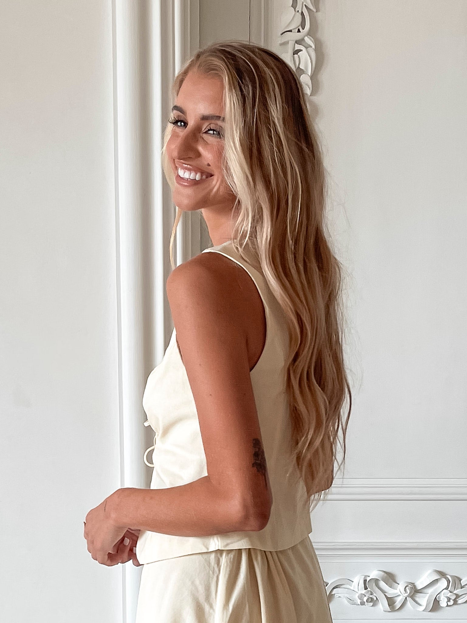 Our Rowyn Set comes in a yellow colour. A reimagination of classic sophistication, the Rowyn Set fuses modern aesthetics with traditional refinement for a look that is both versatile and iconic.